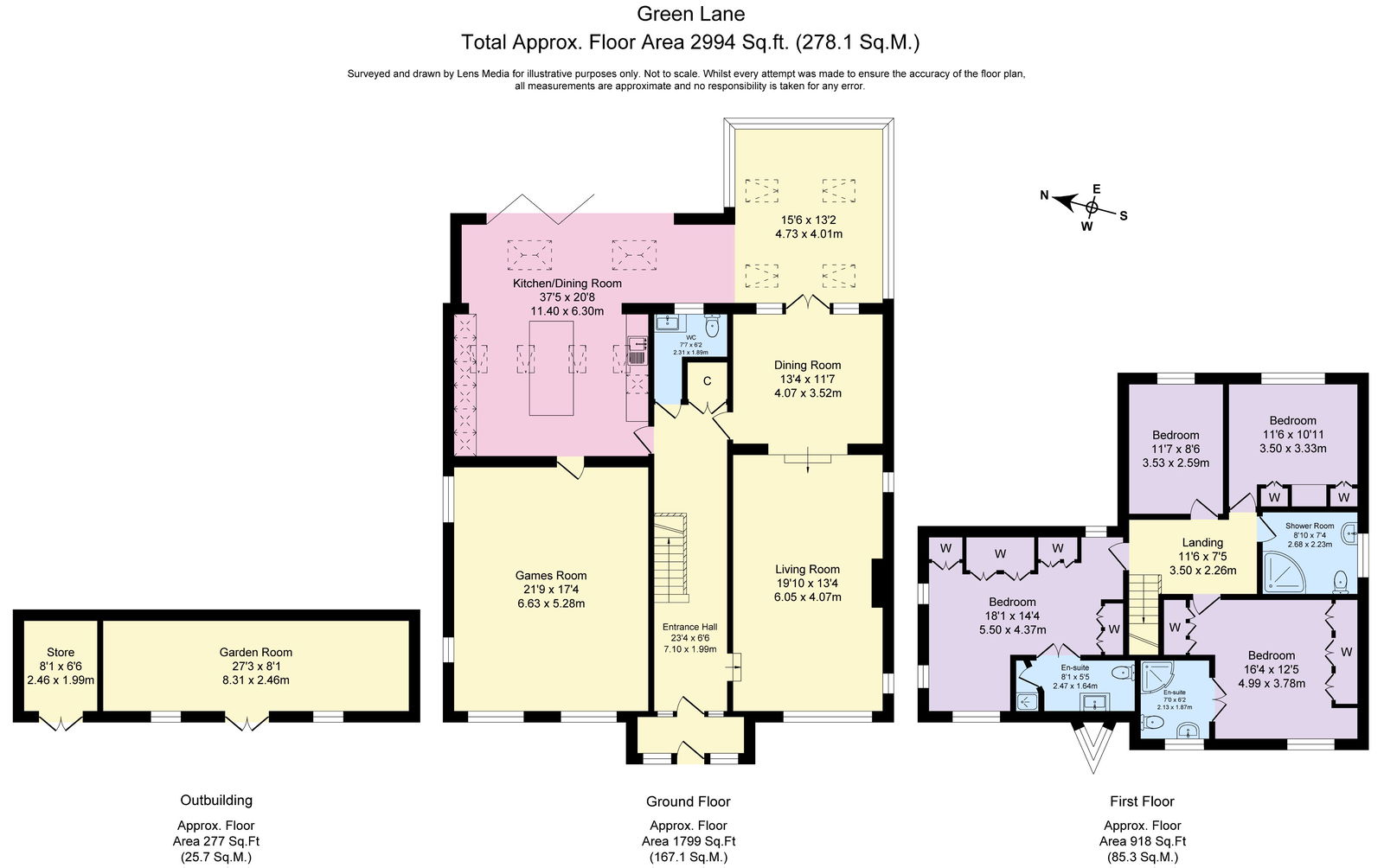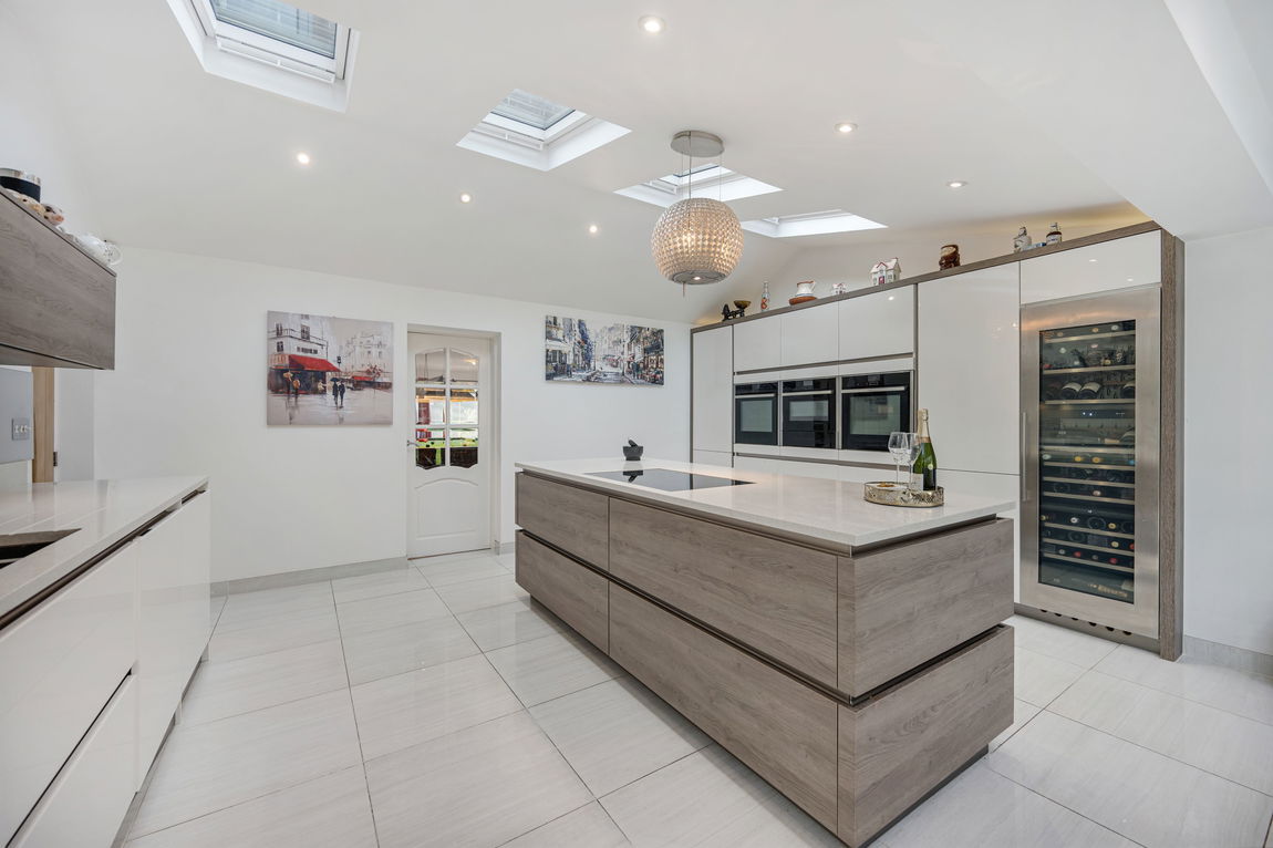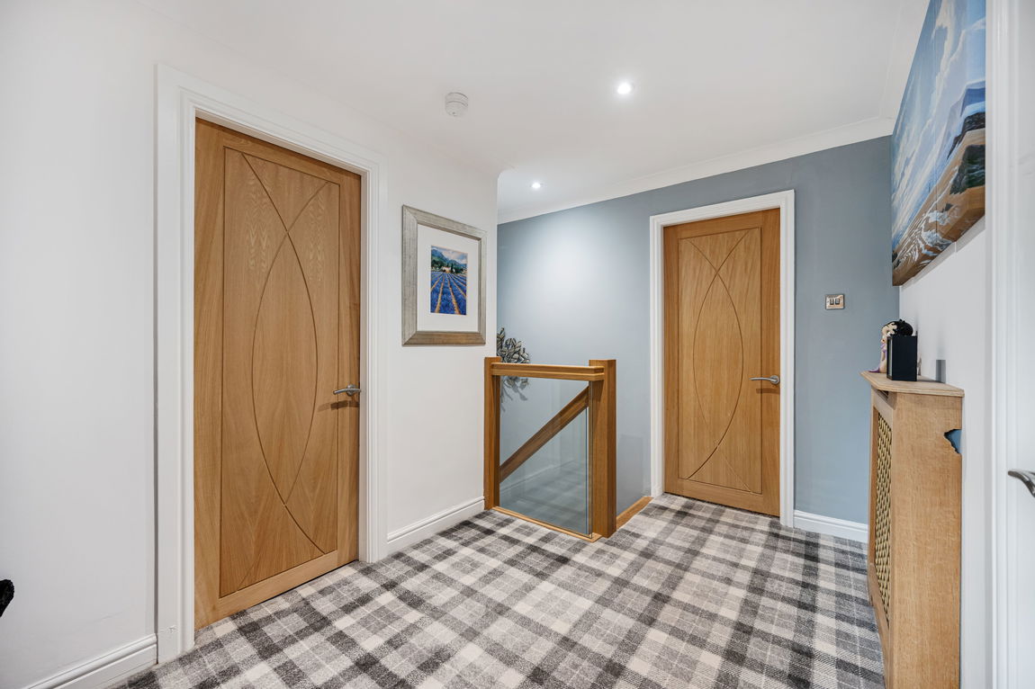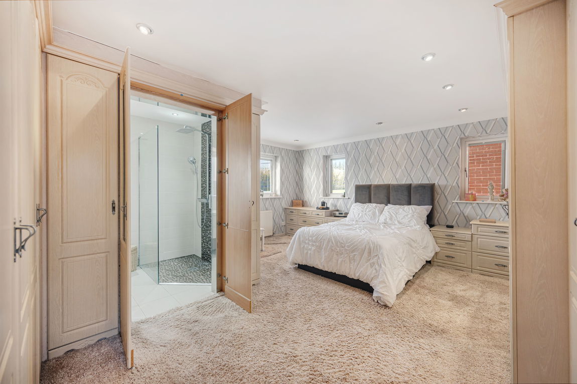 Upstairs, the sense of space and calm continue. Four generous double bedrooms provide space for the whole family to unwind, two of which enjoy the luxury of their own ensuite shower rooms both beautifully finished. Each bedroom also benefits from fitted wardrobes, providing excellent storage solutions. The principal bedroom and bedroom two are further enhanced by a comprehensive range of fitted bedroom furniture, creating elegant and well-organised spaces that feel both practical and well finished.