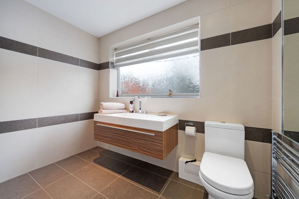 A separate utility room off the kitchen keeps everything beautifully organised with a rear access door leading out into the garden, while a discreet WC completes the ground floor with practicality in mind.