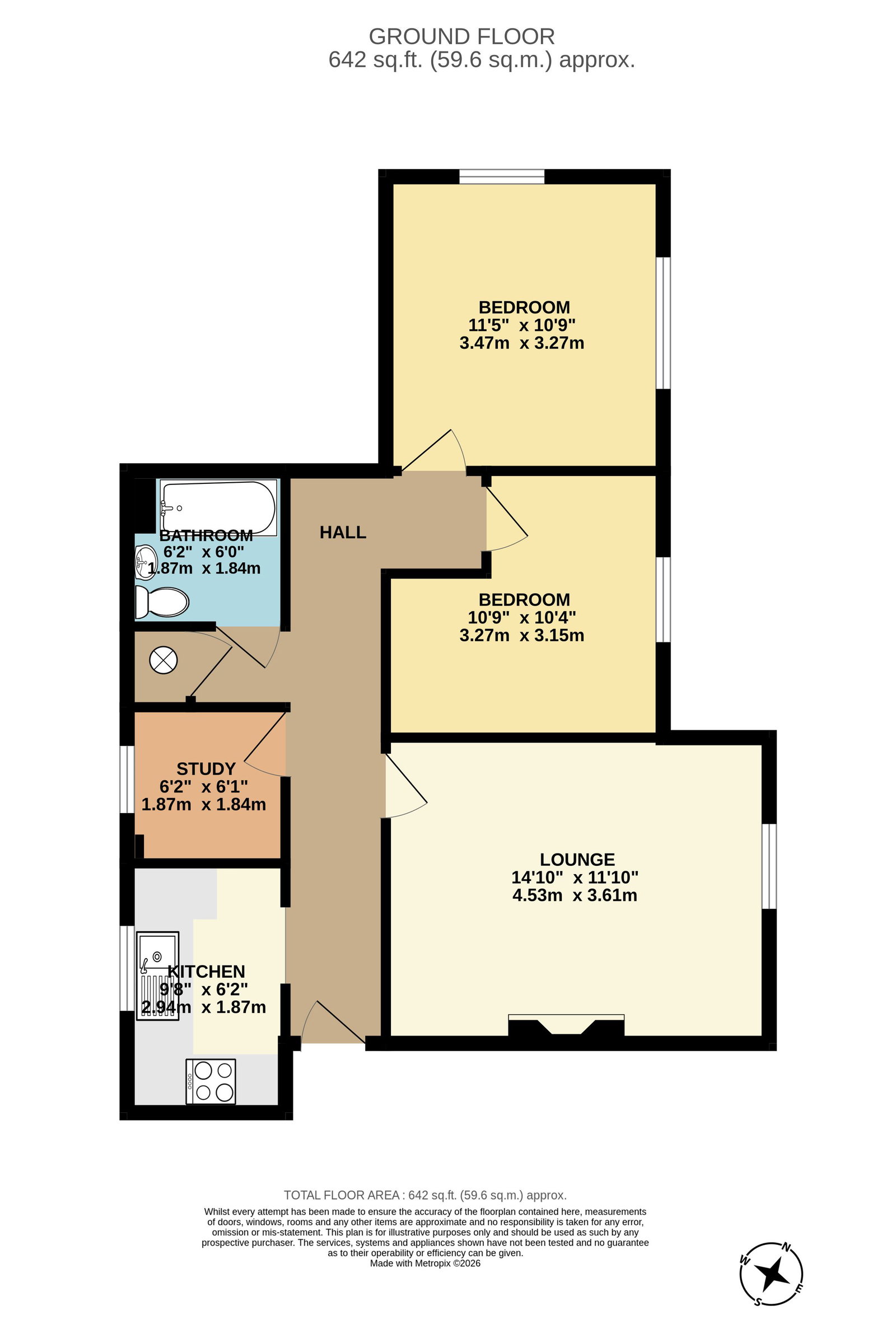 Both bedrooms are well-sized, offering flexibility for sleeping, working from home, or accommodating guests, while the contemporary bathroom is fitted with a three-piece suite. Practicality hasn’t been overlooked either, with excellent built-in storage including a large cupboard — ideal for keeping everyday living effortlessly organised.