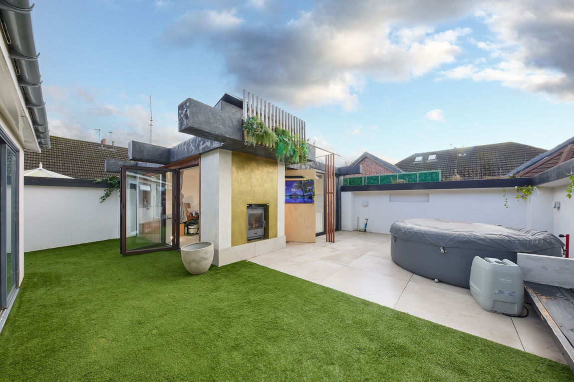 Outside, the property is approached via a private gated entrance, offering both security and a welcoming sense of arrival. The outside space is equally appealing, with a delightful rear garden that’s perfect for relaxing or entertaining. The rear garden has been completely transformed into a private oasis for those who enjoy living outside in the warmer months. Cleverly designed and landscaped to include a large patio area, perfect for 'Al Fresco' dining in the summer months, an area laid to AstroTurf great for dogs or children playing and a purpose built garden room, which is a versatile space that extends the living accommodation further, ready to be transformed into a home office, creative studio, gym, or a peaceful retreat to suit your needs.