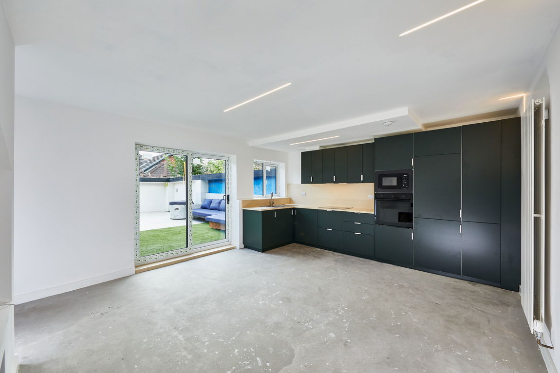 At the heart of the home lies a striking statement kitchen, finished in a bold contemporary dark green, offering the perfect mix of both style and functionality.
