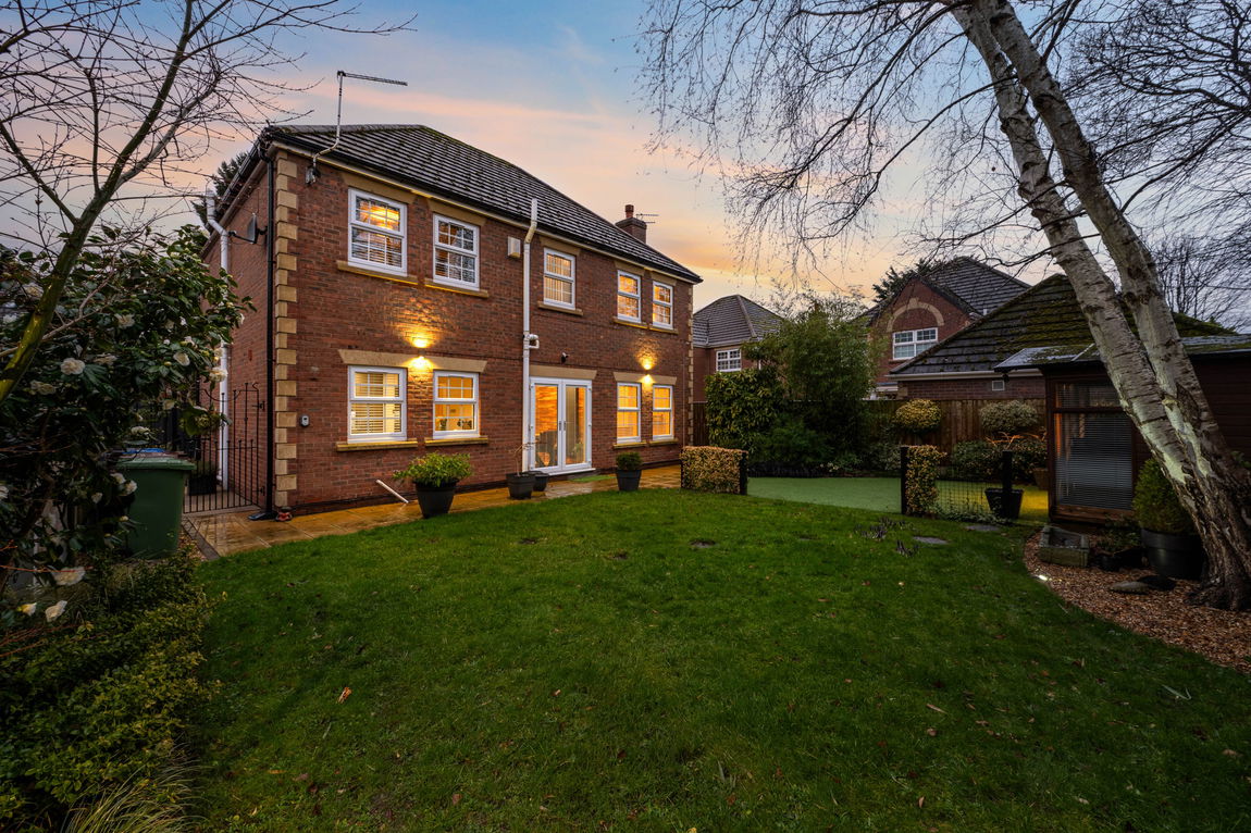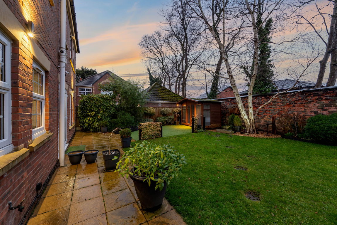 The rear garden has been intelligently landscaped to offer distinct areas for relaxation and entertaining. A large patio sets the tone for al fresco dining, complemented by lawn, low-maintenance astroturf and carefully positioned seating areas. Tucked away, a detached summer house offers genuine versatility — bar, gym, studio, workspace — the choice is yours.