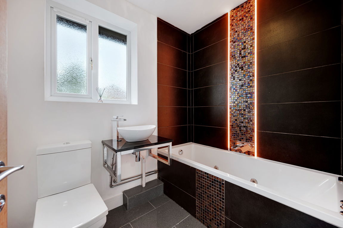 The main family bathroom continues the theme — stylish, beautifully presented and designed to serve busy mornings with ease.